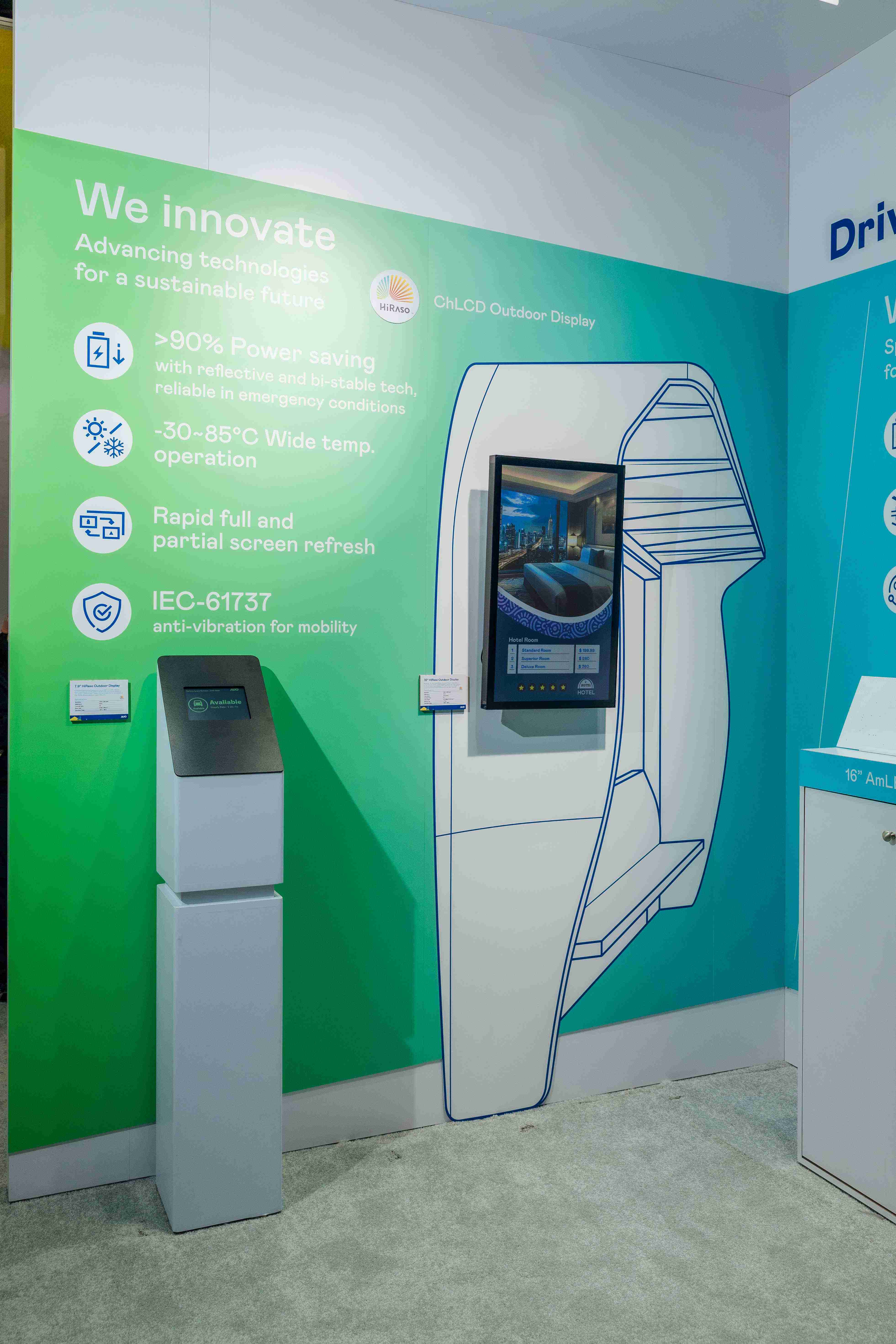 HiRaso胆固醇液晶显示器运用反射环境光线的方式,,呈现影像显示时零耗能的环保省电诉求,,光线愈强愈能呈现绝佳的色彩饱和度及显示效果,,,同时在摄氏-30度至85度间宽温的使用优势,,为户外电子看板的新首选。。。