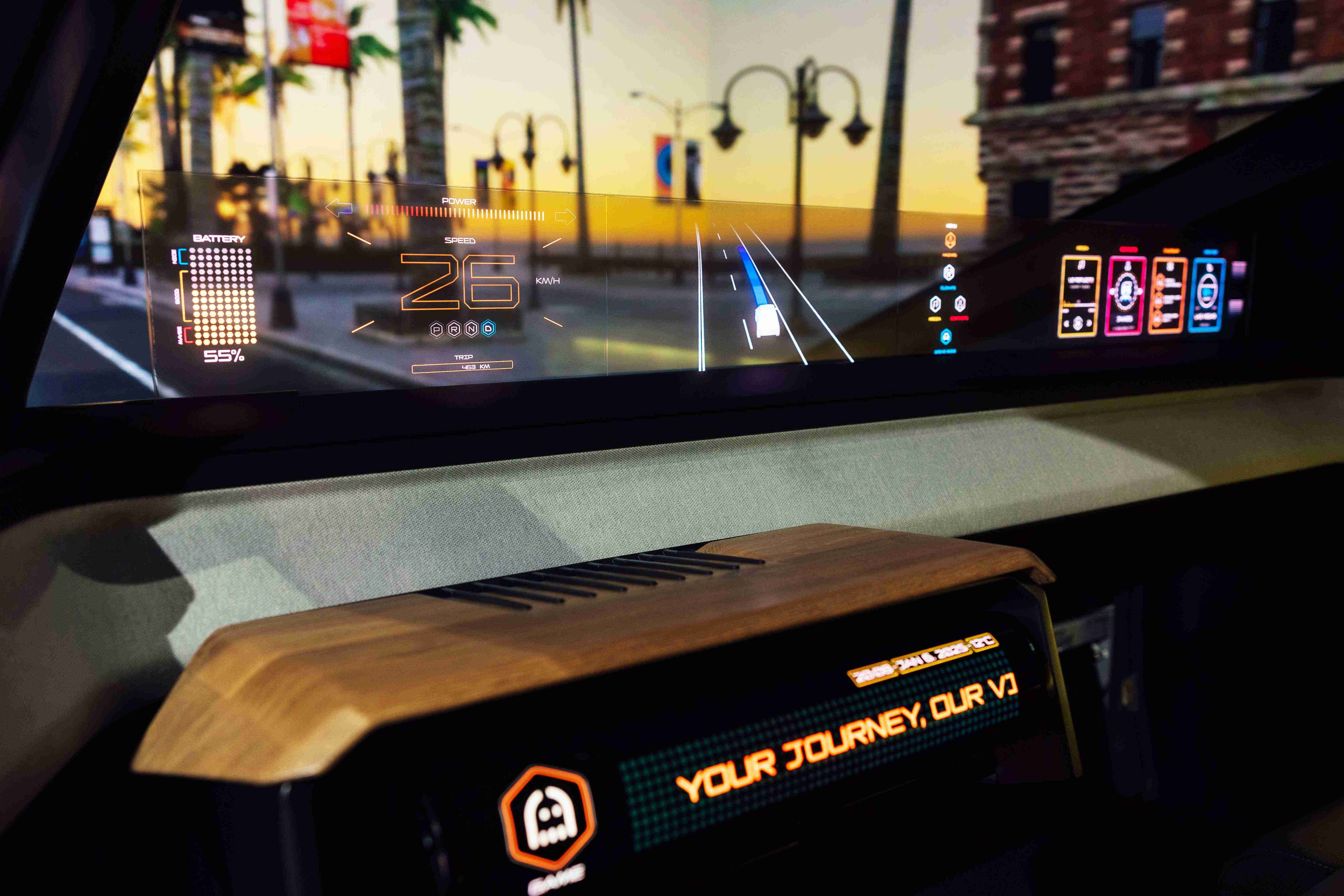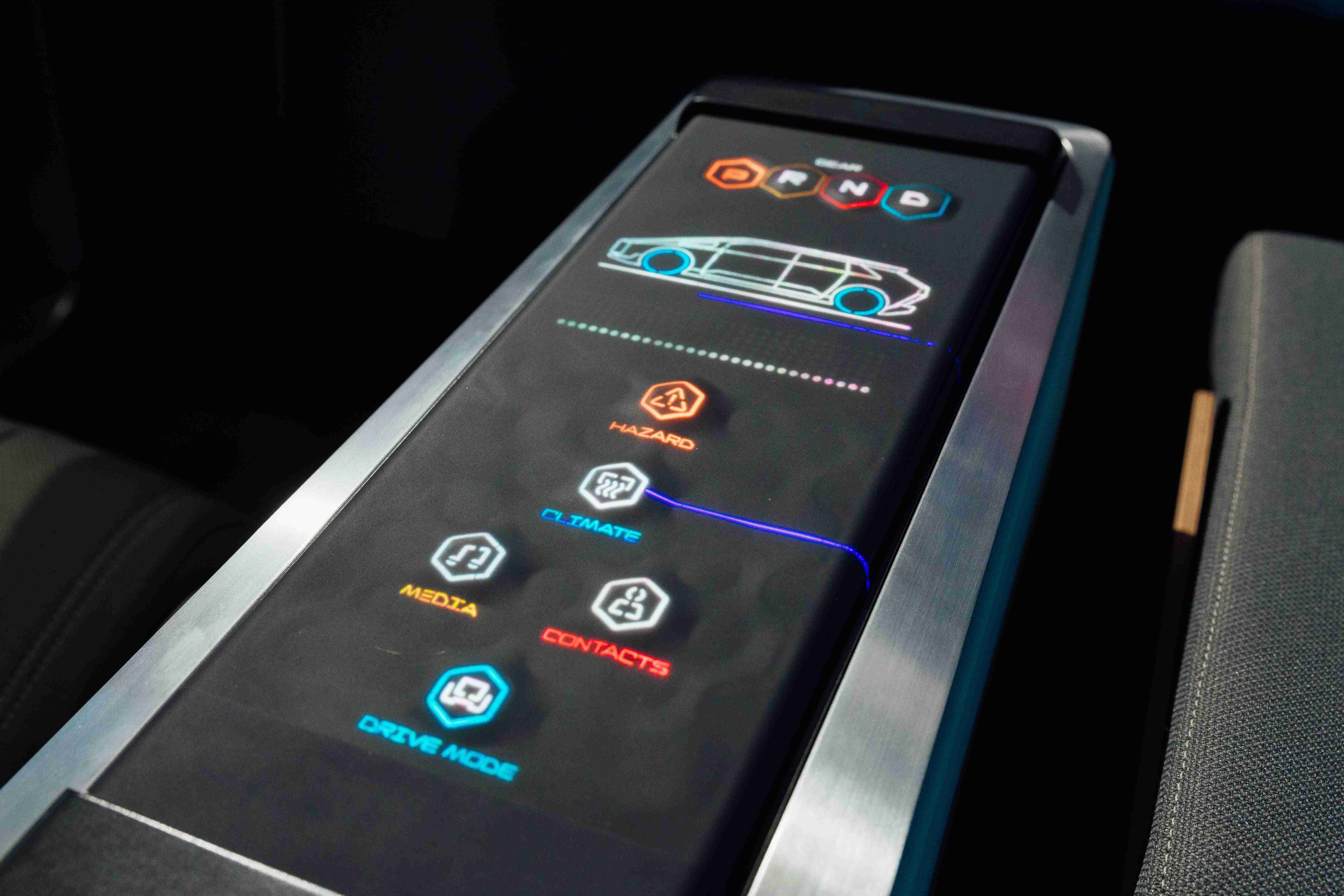 幻境全景天幕(Virtual Sky Canopy)将无缝拼接大型化的透明Micro LED显示器融入至天窗,,,带来沉浸式体验,,,将人机介面扩展至整个座舱。。 银河集团光电以人性化的设计引领直觉式的人机互动,,,,透过多变形态中控显示(Morphing Center Control)、、、隐藏式智驾介面(Foldable Cruise Pilot)等解决方案,,,,让乘用者依据自身需求调整、、、、控制座舱内所需功能。。