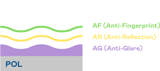 银河集团光电发展出独家的表面处理跟多层镀膜技术,,,,让外部光线照射到显示器表面时所产生的反射光大幅降低。。。。