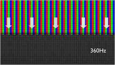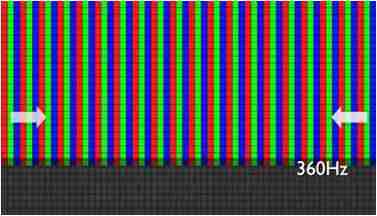 传统液晶驱动是从左到右单向进行,,,在画面更新速度愈来越愈快的情况下,,,位于驱动线路末端的右下角区域,,,,画素的闸极来不及在短时间内获得足够电压,,无法显示出正确的颜色资讯。。。 |